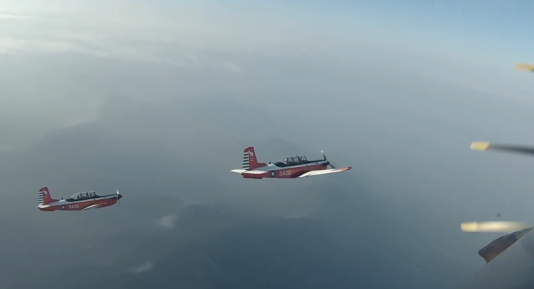 飞行员一般都要在螺旋桨初级教练机上,练习飞行的基本动作和编队的基础技能。大陆这边是经典的初教六,台湾用的是T-34C,都是螺旋桨飞机。
