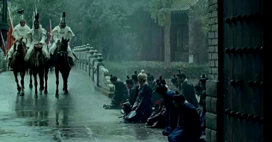 (《电影《柳如是》,一代文宗钱谦益跪迎清军进城)