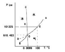 三相点是指在热力学里,可使一种物质三相(气相,液相,固相)共存的一个温度和压强的数值。举例来说,水的三相点在0.0076℃(273.16K)及610.75Pa 出现;而汞的三相点在−38.8344℃及0.2MPa出现。