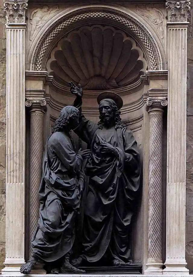 提到15世纪下半期佛罗伦萨文艺复兴黄金时代的雕塑家,人们首先就会想到委罗基奥(Andrea Del Verrocchio,1435年-1488年),尤其是他创作的耶稣与圣托马斯是佛罗伦萨共和时代的法律代表公众利益努力探寻真相并同时力求公正宽容的精神写照。