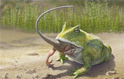 恶魔角蛙的头部硕大,几乎占到全身体积的1/2。不仅脑袋大,它们的嘴也十分宽大。科学家在发现恶魔角蛙化石的地层中还发现了体形较小的恐龙化石,并推测一些幼年恐龙也可能是恶魔角蛙的猎物。蛙竟然能捕食恐龙,科学家是怎么做出这种惊人推断的?