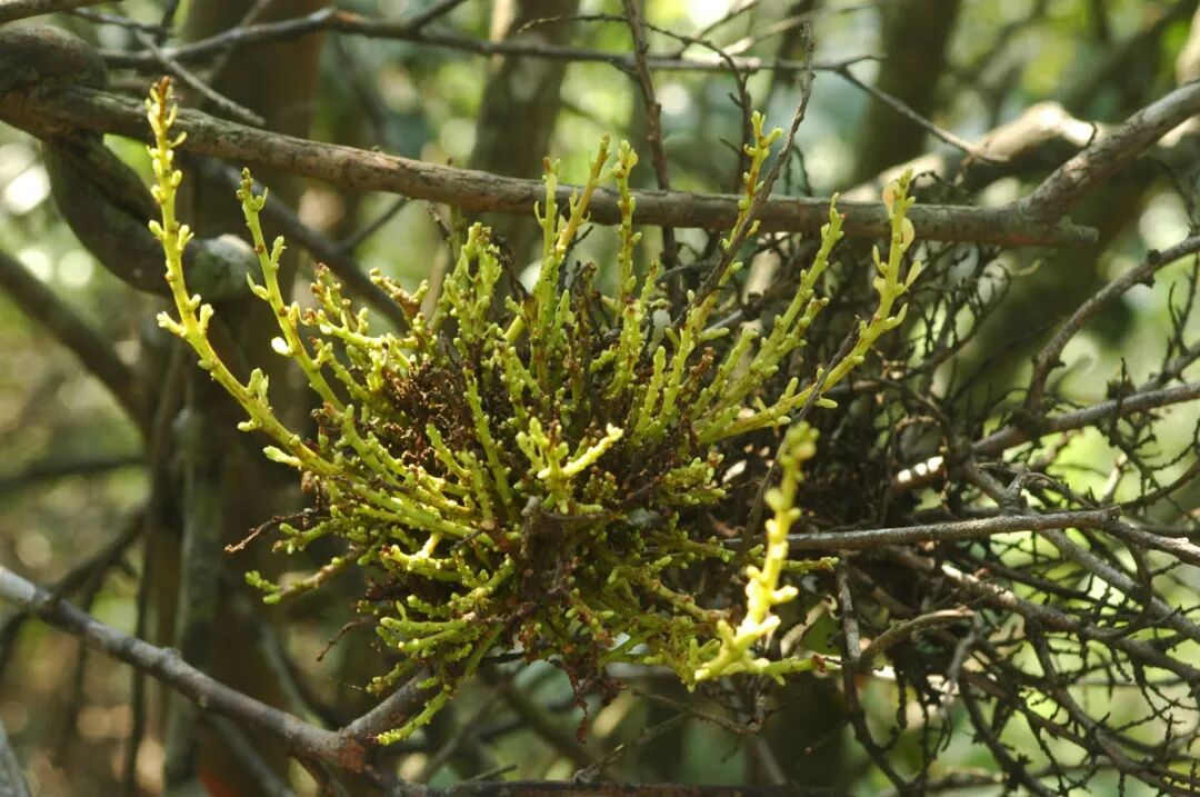 这类植物一般寄生在桑寄生、槲寄生等植物的枝蔓上,而桑寄生、槲寄生等植物则是在木本树木枝梢上营半寄生生活。