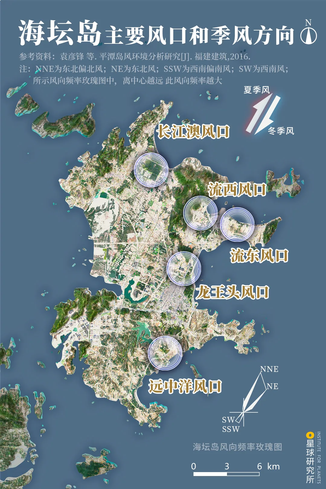 (海坛岛主要风口和季风方向,制图@陈志浩/星球研究所)