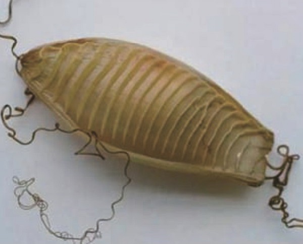 这个螺旋形的东西正是虎鲨的卵以及外层的保护壳——卵壳。卵壳的成分是一种胶原蛋白,和人类的头发、指甲类似,对于卵内部的胚胎有保护作用。不过,卵壳的主要功能还是固定和隐藏,这就有赖于它奇特的外形了。科学家发现,这种螺旋形的卵壳很容易固定在岩石缝隙或者海藻丛中,这样就不容易被海浪冲走,捕食者也很难把它拽下来。
