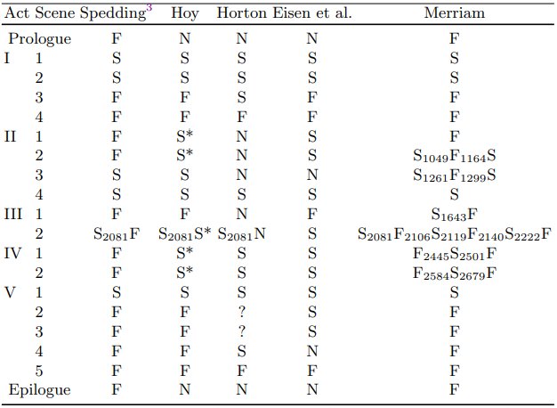 S代表莎士比亚,F代表弗莱彻,带下标的数字表示给定段落的最后一行丨参考文献[8]