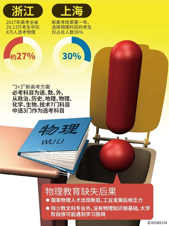 ▲上海和浙江在实行新高考后,由于物理在所有科目中被广大学生认为是选考科目中最难的一门学科,导致大量的学生弃考物理。(图片来源/人民视觉)