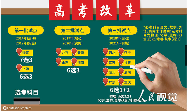 ▲河北、辽宁、江苏、附件、湖北、湖南、广东、重庆等8个省、直辖市成为第三批启动高考综合改革城市(图片来源/人民视觉)