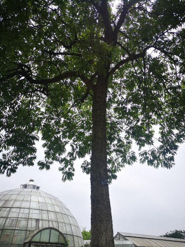 肥皂荚(Gymnocladus chinensis Baill)是豆科肥皂荚属的落叶乔木,又被称为肉皂角。虽然跟皂荚有亲缘关系,但区别也很明显。首先肥皂荚全身没有长刺;其次,叶是二回羽状复叶;再次,它的花呈白色或带有紫色;最后,肉皂角果实又肥又厚,明显比皂荚果短。