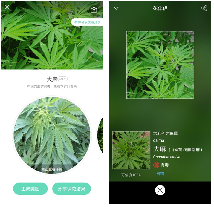 “形色”和“花伴侣”对同一张照片的识别结果