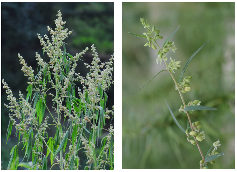 上图为普通大麻,下图为印度大麻。