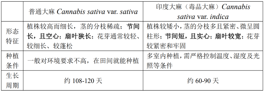为了能够让大家更好地区分哪个才是毒品大麻,我们总结了普通大麻与印度大麻(毒品大麻)的主要区别,其中最实用的鉴别特征是:普通大麻节间长且空心,叶子狭长 VS. 印度大麻节间短且实心,叶子较宽。