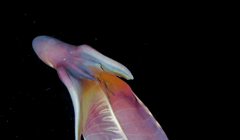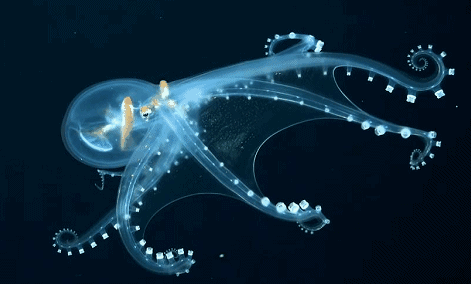 海洋研究员在进行科考时,经常会见到很多稀奇古怪的物种。 施密特海洋研究所的成员最近在太平洋中部便惊喜地发现他们拍摄到了一种样貌极其罕见的章鱼:全身接近透明,身体构造和吃下去的东西都能看得一清二楚。 它透明的胶状肉质使得它们在海中难以被寻觅,每次被清晰拍摄到都会成为学者和大众们关注的焦点。