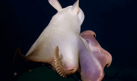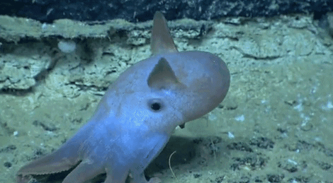 仔细看它游泳的样子,肉嘟嘟的小身板儿,呼扇呼扇的两个小鳍,活脱脱海洋里的一个小飞象,它也因此得名小飞象章鱼。