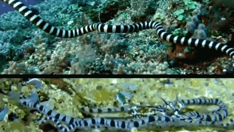 面对成群捕食章鱼的雀鲷时,它把自身花纹调成黑白相间,岔开几条大长腿在礁石上匍匐前进,试图以模仿致命的水蛇吓退雀鲷。