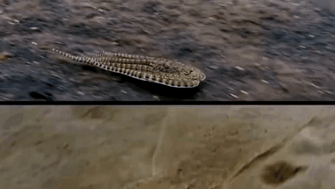 当危险饥饿的鲨鱼逼近它时,它将身形紧缩成扁平形,紧贴海床迅速移动,伪装成鲨鱼讨厌的毒鱼来躲避危险。