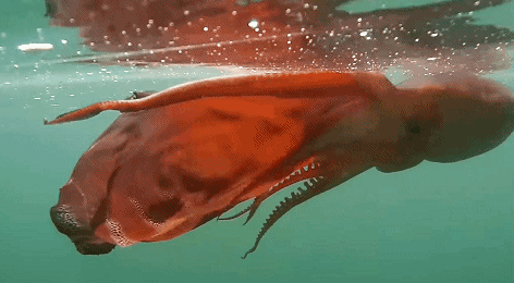 同样在海里见到会让人心脏漏跳一拍的还有这种章鱼,除了经典的椭圆形章鱼头,它在游泳时还会张开大大的肌肉膜掠过海水,因此得名毯子章鱼。