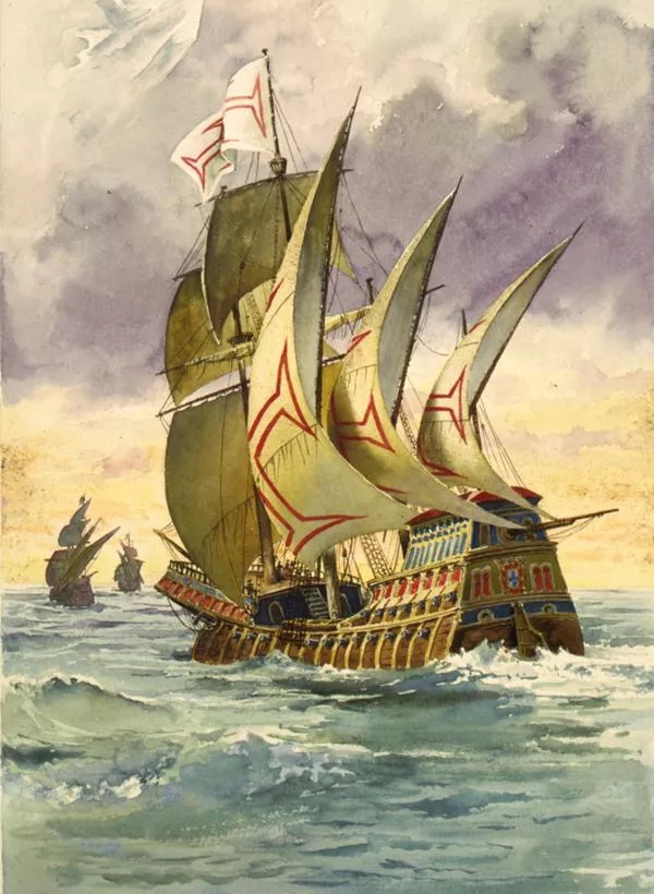 1497年7月8日,达·伽马率领4艘探险船起航离开里斯本。这是葡萄牙历来海外探险中准备最充分的一次航行。旗舰“圣·加布里埃尔”号是航海元老迪亚士亲自为这次远航量身打造的,载重约120吨,武器配备齐全。而补给船的载重大约是200吨,为船队准备了足够吃3年的食物,主要是腊肉、饼干以及淡水。