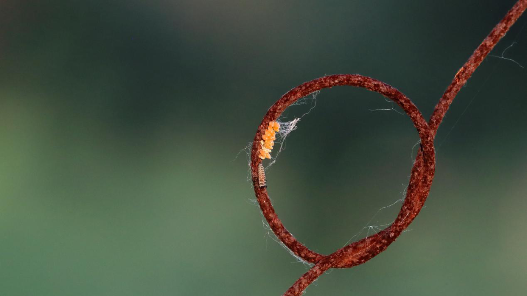 一龄幼虫(从产在铁丝上的卵孵化出)