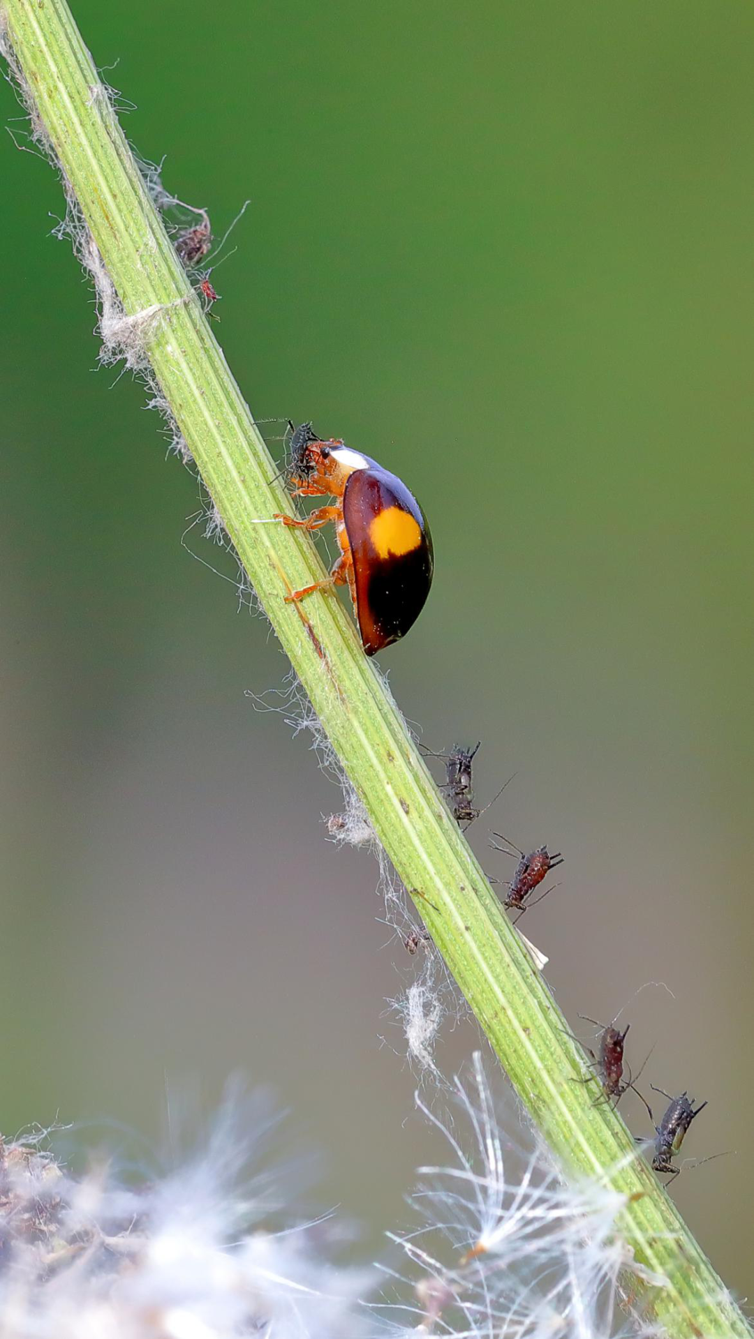 最初拍摄微距昆虫,也是从拍摄瓢虫开始的。其实瓢虫对于我来说,是既熟悉又陌生的,熟悉的就是童年记忆中印象最深刻的益虫--七星瓢虫,还有就是那个植食性的“坏”瓢虫----马铃薯瓢虫了。