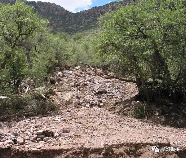 冲积扇(图源@www3.nd.edu) 根据现代冲积扇地貌及 沉积物的分布特征, 可将冲积扇相划分成扇根(顶)、 扇中和扇缘(端)3个亚相。 (图源@文献[1]) 冲积扇上的沉积物按成因 可分为水携沉积物和 泥石流沉积物两种类型。 前者可进一步按沉积的位置和 沉积物特征划分为河道沉积、 漫流沉积和筛状沉积。 冲积扇(图源@World History Encyclopedia) 河道沉积指暂时切入 冲积扇内的河道的充填沉积。 主要由砾、砂沉积物组成, 粒度粗,分选差,成层性不好, 向下游方向可见交错层理。 河道沉积(图源@Geological Digressions) 携带沉积物的流水从 冲积扇河床末端漫出, 流速和水深骤减使 携带的沉积物呈 席状或片状沉积下来, 形成席状砂岩、 砾岩和泥岩堆积体, 称为漫流沉积。 片流沉积(图源@UNIVERSITY OF MARYLAND) 当源区供给 冲积扇的陆源物质 主要为砾石而无或 极少有其他粒级的物质时, 在冲积扇的表层便堆积了 舌状砾石层即筛状沉积。 它虽较为少见, 但却是冲积扇上 最富特色的沉积。 筛状沉积(图源@UNIVERSITY OF MARYLAND) 大量碎屑物质在泥石流中 呈块状整体悬浮搬运, 在扇体上堆积后, 形成泥石流沉积。 泥石流常发育在 扇体根部和中部, 其特点是砾砂泥混杂, 分选极差。 泥石流通道及沉积(图源@AZGS) 根据气候条件不同, 可将冲积扇划分为 湿润型和干旱型两种类型。 润湿型冲积扇(湿地扇) 单个扇体大, 表面积可为干早型冲积扇 (旱地扇)的数百倍。 (图源@文献[1]) 泥石流沉积是 干旱型冲积扇的重要组成部分, 特别是在扇根处, 沉积厚度大,向下游方向 沉积厚度急剧减薄, 粗碎屑含量降低, 但粘土含量相对不变。 泥石流沉积(图源@The University of Arizona) 湿地扇可有较发育 植被和河流作用。 自扇根到扇缘的沉积特征 具有较明显变化, 即河流能量降低、 河道变浅、碎屑粒径变小、 席状沙坝经过渡带变化为 远端纵向沙坝等。 湿地扇(图源@文献[8]) 02 河流相