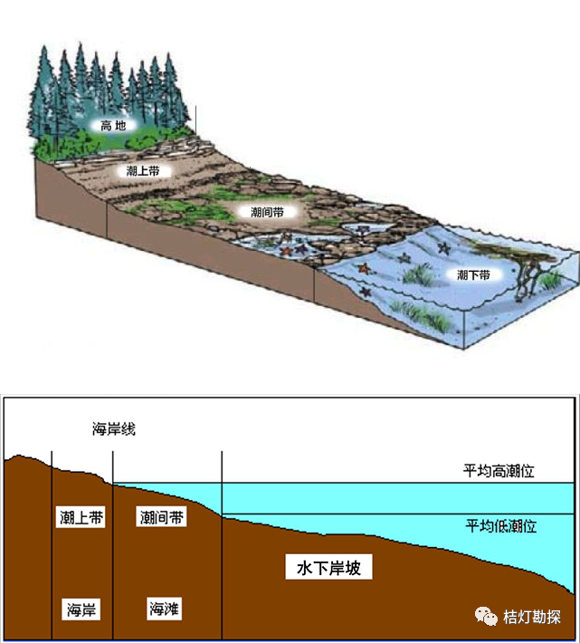 高能海岸带(上)(图源@Andrew / CC BY);低能海岸带(下)(图源@ Brian Spittles / CC BY)