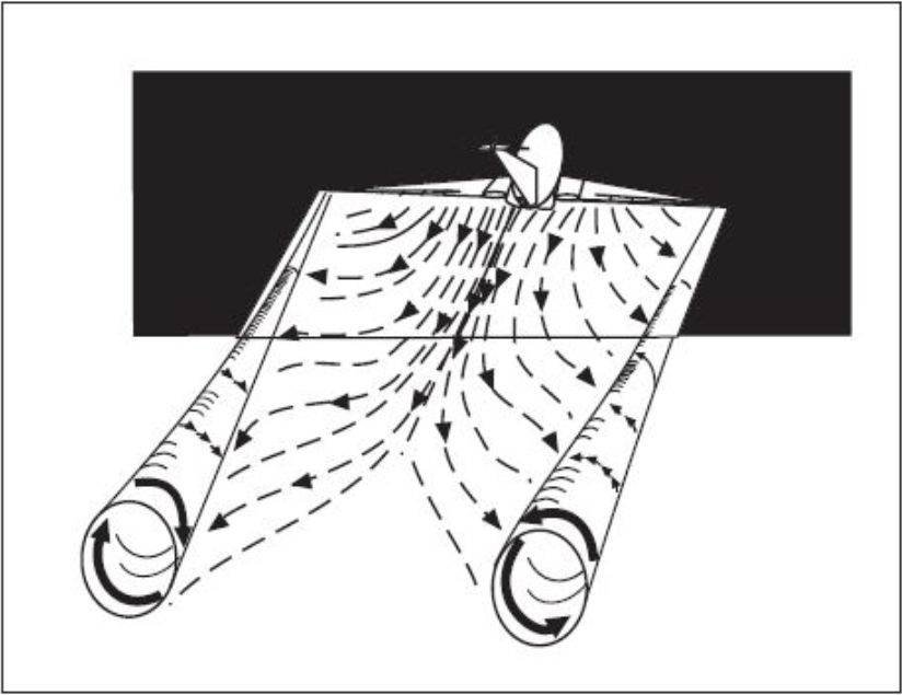每架飞机在飞行中都会产生尾流。尾迹湍流是飞机产生升力的函数,导致在飞机后面形成两个反向旋转的旋涡。由于旋涡的强度、持续时间和方向,产生的尾流湍流会影响遇到的飞机。尾迹湍流可以施加超过飞机遇到时滚转控制权限的滚转力矩,可能对乘员和飞机造成伤害。飞行员在经过另一架飞机的尾流时,应时刻意识到尾流遇到湍流的可能性,并相应地调整飞行路线。