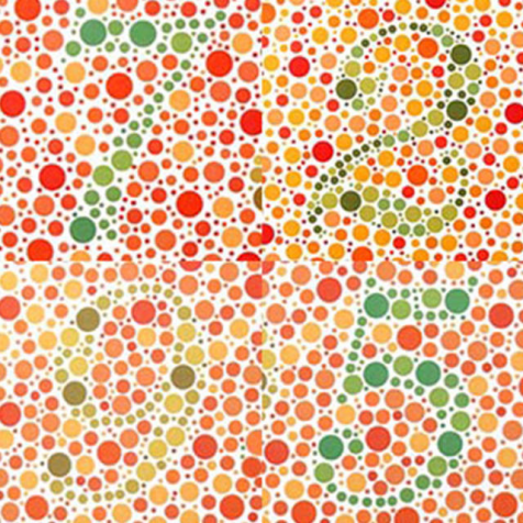 上图就是一张典型的色觉障碍测试图。大型考试体检、飞行员体检、驾驶员体检等身体检查时都会遇到这种图,如果不能辨别出图中数字,就是存在不同程度的色觉障碍。之所以在这里提到色觉障碍,也是因为这种疾病有很强的性别差异。