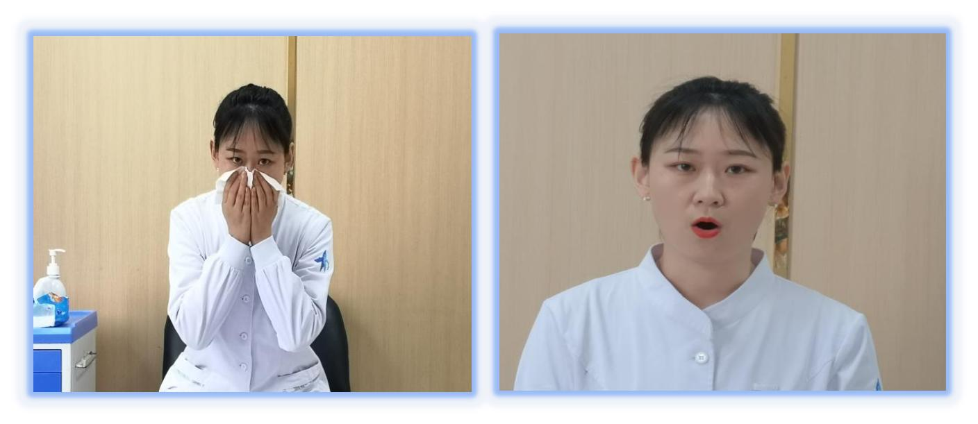 在新型冠状病毒肺炎患者治疗中气道清洁也是很重要的一部分,通常采用呵 气排痰的方法,避免用力咳嗽时飞沫喷溅而造成病毒的传播。接下来我们来进行 排痰训练。