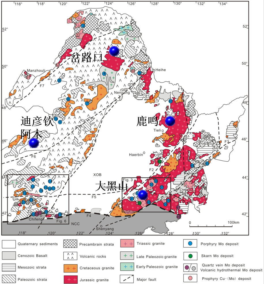 中国东北地区有四个超大型的钼矿床:岔路口、鹿鸣、迪彦钦阿木、大黑山。