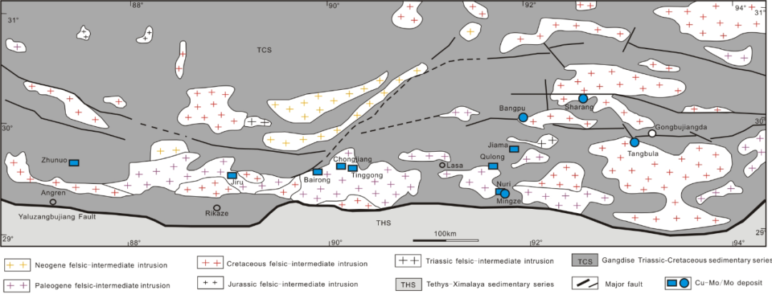 该地区以斑岩型铜钼矿为特色,如很出名的驱龙斑岩铜钼矿。矿床常产于中生代地层及中生代-新生代花岗岩中,成矿时代为新生代,成矿与新生代中酸性侵入岩有关。