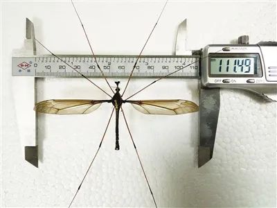 2017年8月,成都华希昆虫博物馆的馆长赵力在成都青城山采集到了一只毛黑棘膝大蚊Holorusia mikado,其个体翅展竟达到11.15 cm,堪称大蚊中的“巨无霸”。