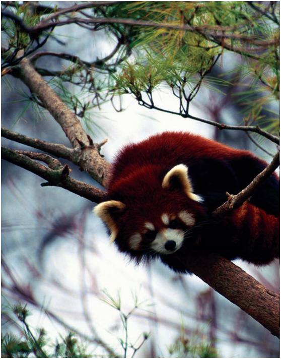 图1 在松树上休息的小熊猫(刘旭,2009)
