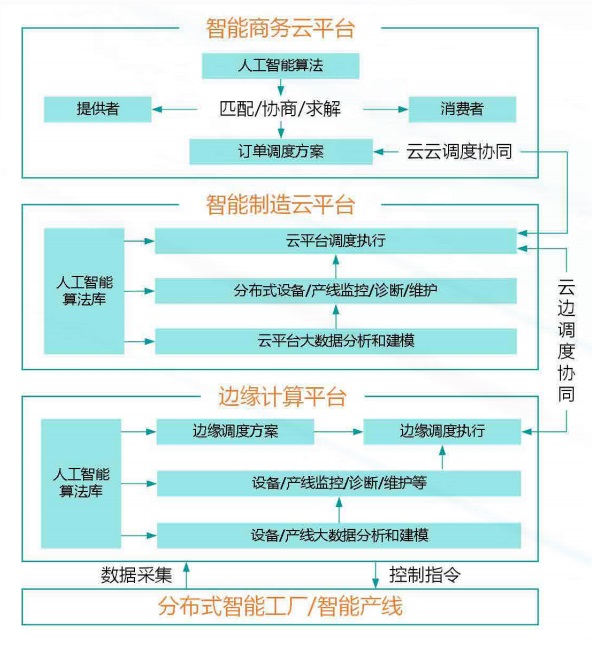 • 从参与者的角度,包括平台运营者、资源 / 服务提供者,以及资源服务用户(即消费者)。因此,智能制造系统的云边协同实际上是各个参与方围绕制造业务需求开展的多主体协同。