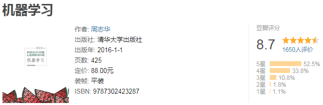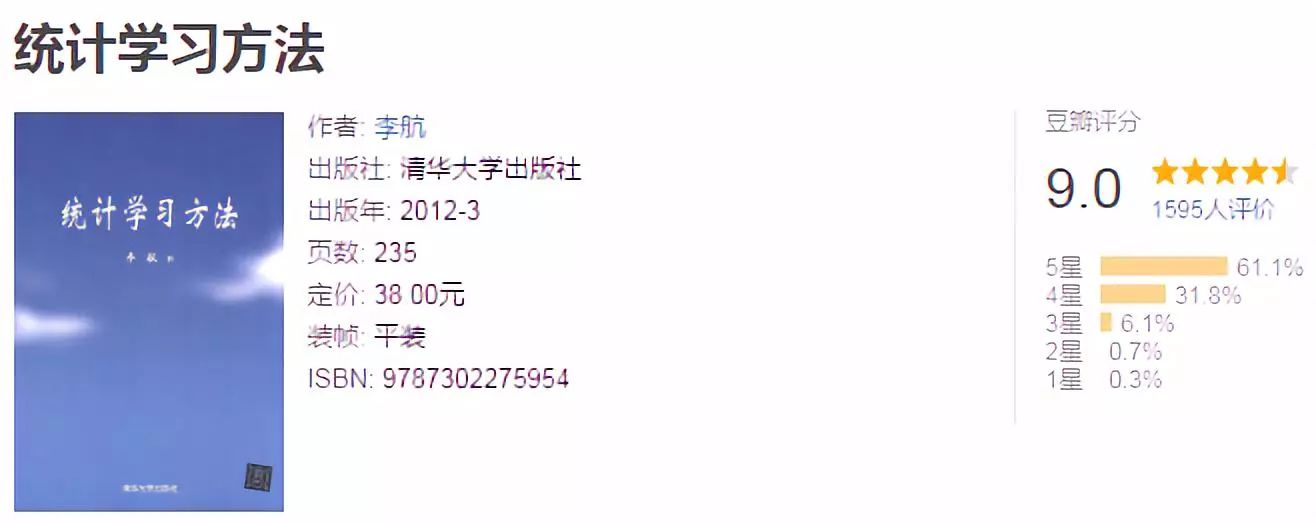 推荐理由:不要被书名《统计学习方法》(作者:李航)骗到,讲的其实是机器学习算法。