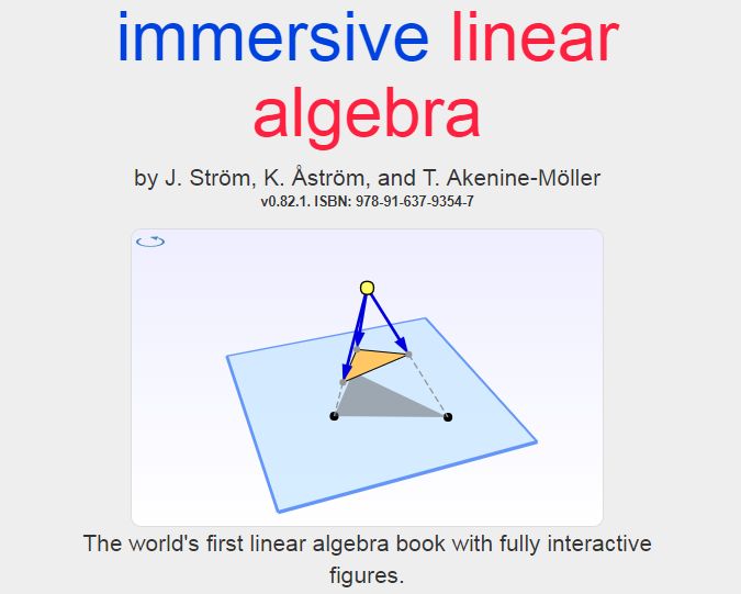 《沉浸式线性代数》(Immersive Linear Algebra) :通过可以活动的图像,你可以观察和理解难懂的数学理论:http://immersivemath.com/ila/index.html