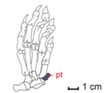图4小熊猫前肢的骨骼,pt为伪拇指(pseudothumb)(Huetal., 2017)