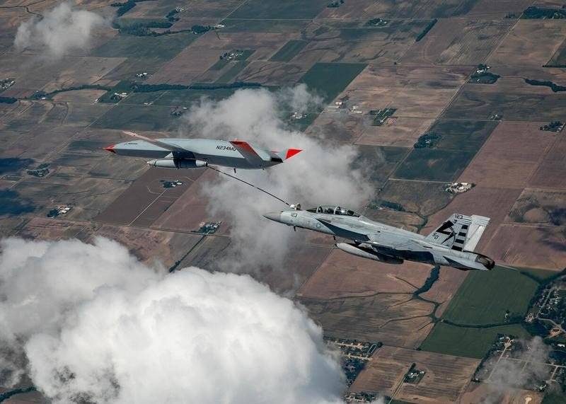 MQ-25试验飞机此前在2021年6月4日为一架F/A-18F加油,这标志着载人飞机首次从无人机获得燃料。