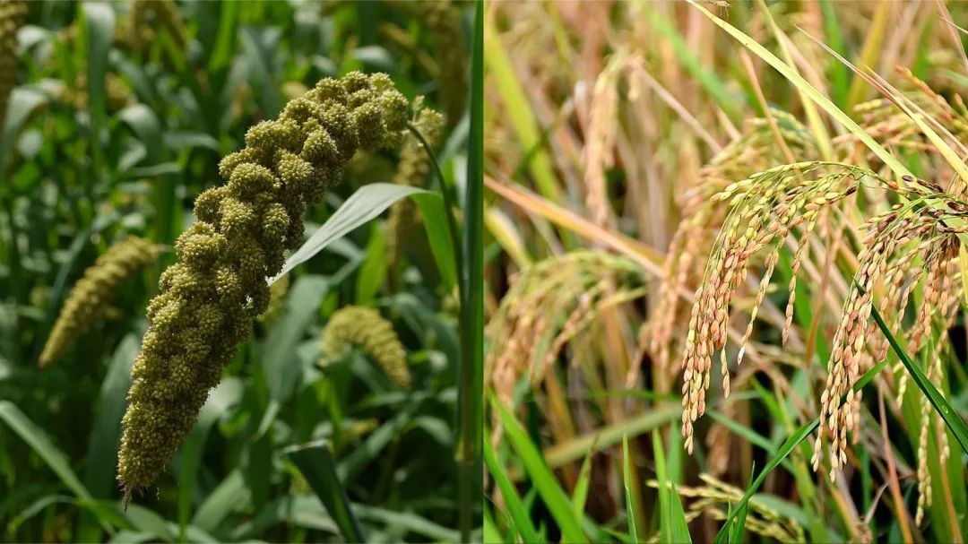 小米(左)和水稻(右),在今天也是常见的粮食 | 左:STRONGlk7 / Wikimedia Commons;右:Augustus Binu / Wikimedia Commons