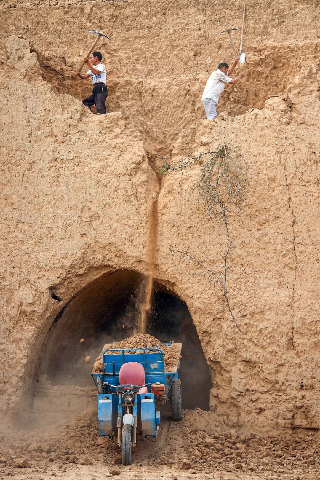 (2008年6月7日,山西芮城舜南村,正在扩挖土窑洞的一户人家,仅为示意,图文无关,图片源自@视觉中国)