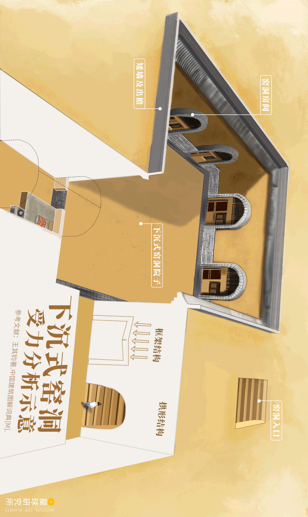 (请横屏观看,下沉式窑洞受力分析示意,制图@杨宁/星球研究所)