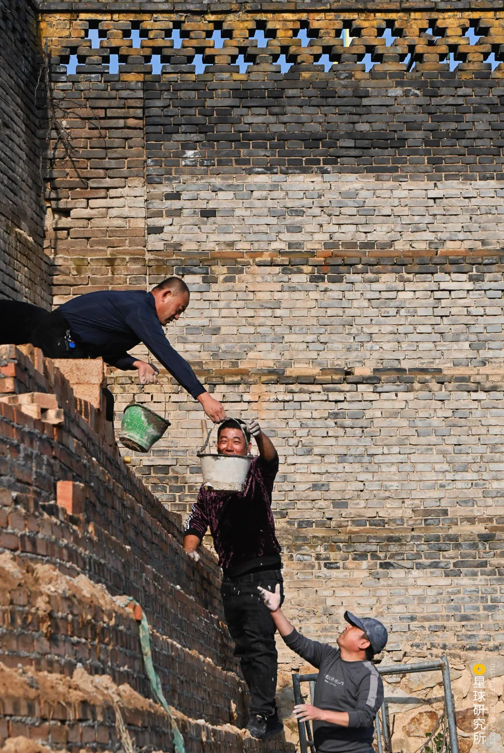 (2021年11月27日,在平遥古城城墙修缮现场,正在对古城墙出现险情的原夯土进行拆除,图文无关,仅为示意,图片来源@视觉中国)