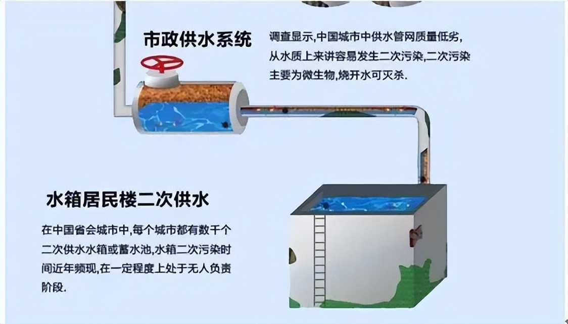 即便是城市自来水,尽管源头上做好了消杀,然而管道输送过程中还是难以杜绝污染。