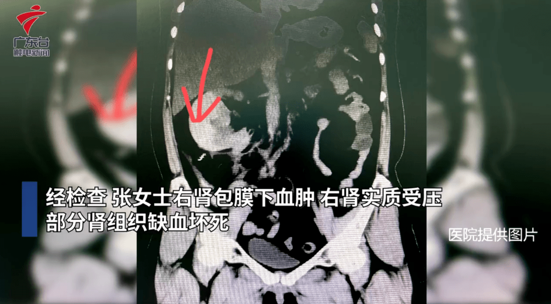 49岁的张女士为了减肥,把家用按摩仪调到最高档放在肚子上半小时,随后出现了高烧、剧痛等身体不适症状。经检查,张女士右肾包膜下血肿,右肾实质受压,部分肾组织缺血坏死。