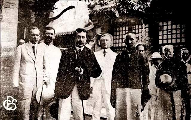 1920年潘勒韦(左三)、博雷尔(左二)等在北大 | 图源: