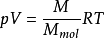 式中, p 为气体压强,V 为气体体积,m 为气体总质量, M 为气体的摩尔质量,T 为气体的热力学温度,其值T = 273.15 + t 。 R 称为理想气体普适常量,也称为摩尔气体常量,理论值 R = 8.31J /(mol ⋅ K)。各种实际气体在通常压强和不太低的温度下都近似地遵守这一状态方程,压强越低,近似程度越高。