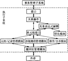执行子系统(见图)至少应包括接口模块,关系表达式解释模块,单元组接口模块,存取路径管理模块,元组或记录管理模块,排序/合并模块,优化 模块和缓冲区管理模块等。
