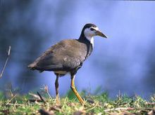 乌水鸡是一种体型较大的水鸡,身体乌黑色,与我国的黑水鸡比较相似,但体型较大,大小与白骨顶相当,两胁没有白色细纹,腿红色。与白骨顶也比较相似,并可能混群在一起,但可以从嘴、骨顶和腿的颜色将二者区分开。叫声急促重复的“krurk”声。乌水鸡和黑水鸡几乎是镶嵌分布,黑水鸡几乎遍布世界各地,唯独不产于大洋洲,而乌水鸡则是大洋洲的土产。乌水鸡在澳大利亚东南部和西南部比较常见,在澳大利亚北部则比较罕见。乌水鸡出没于各种不同的湿地环境中,最喜欢边缘有茂密植物的开阔淡水水域,在城市公园的水塘中也能见到。繁殖通常在南部繁殖于9~11月,北部繁殖于1~4月。在芦苇或近水的植物中筑不很隐蔽的巢,产卵4~10枚。