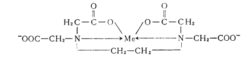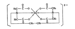 EDTA能与正二价到正四价金属阳离子形成螯合物。在大多数情况下配位数为六,形成的螯合物分子中具有五个环。例如EDTA与Zn所形成的螯合物具有如下结构:
