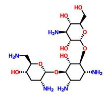 化学名称:O-3-氨基-3-脱氧-α-O-葡吡喃糖基-(1→6)-O-[2,6-二氨基-2,3,6-三脱氧-α-D-核-己吡喃糖基-(1→4)]-2-脱氧-D-链霉胺。