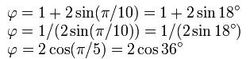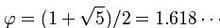 在正五边形和五角星中扮演一个重要的角色。每条边都被分割成几段小的线段,如果用一对线段中较长线段的长度除以较短线段的长度将得到φ。